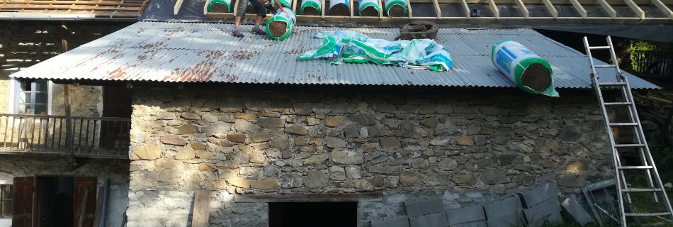 C’est une vieille maison typique de la région, grand bâtiment en pierre construit sur une pente avec des entrées à chaque niveau, la partie sud découpée en 2 petits appartements où vivaient les anciens propriétaires et la partie nord consacrée à la ferme (grange, étable, grenier à foin….). La maison disposait pour tout chauffage d’une …